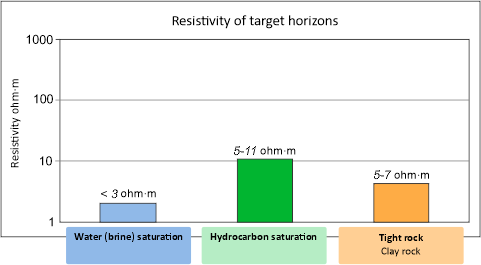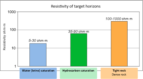 The main feature for identifying reservoir development zones is the contrast of their electrical resistance relative to the host deposits.